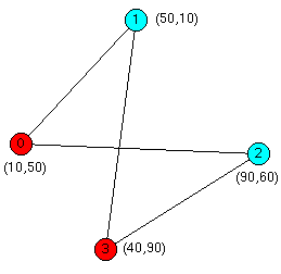 Vektor xtocke: | 10 | 50 | 90 | 40 | Vektor ytocke: | 50 | 10 | 60 | 90 | Vektor barve: | 1 | 2 | 2 | 1 | Vektor crta1: | 0 | 1 | 3 | 0 | Vektor crta2: | 1 | 3 | 2 | 2 |